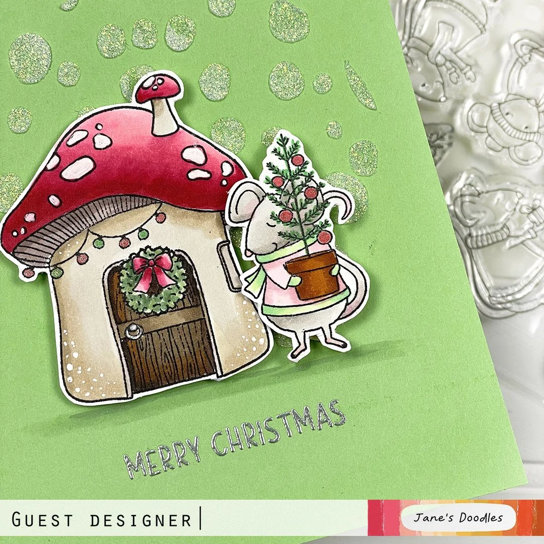 /Hey there, very excited to join Jane’s Doodle for her Winter Release Blog Hop. To celebrate the arrival of the Holiday/Winter 2022 new release Jane is giving away a free stamp set to one winner. Details about the giveaway can be found at end of the post along with a list of the amazing designers included in the hop. This weekend (Nov 4-6th, 2022) Jane’s Doodle is also offering free shipping on all purchases, no code needed. There are 3 great stamp sets, Merry Mice, Happy Christmas, From Us and 1 new stencil; Drops that are being released. Perfect for making some super cute Holiday Cards.